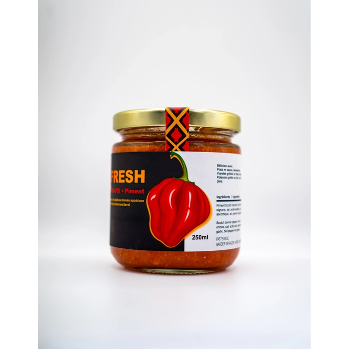 La sauce pilipili Ada Fresh, à base de Scotch Bonnet, est l'essence d'une tradition familiale revisitée pour vos palais. Fabriquée avec soin au Québec à partir d’ingrédients frais et de qualité supérieure, elle incarne un équilibre parfait entre piquant et saveurs riches. Un mélange d’ingrédients de qualité qui célèbre l’héritage culinaire africain tout en s’intégrant harmonieusement à vos repas quotidiens. Polyvalente et délicieuse, elle sublime vos plats, apportant à chaque bouchée une chaleur authentique et inoubliable. Une véritable explosion de saveurs qui rassemble les cultures autour d’une table.