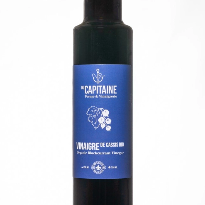Vinaigre de cassis fait à partir des fruits Du Capitaine. Vieilli 5 ans en barriques.