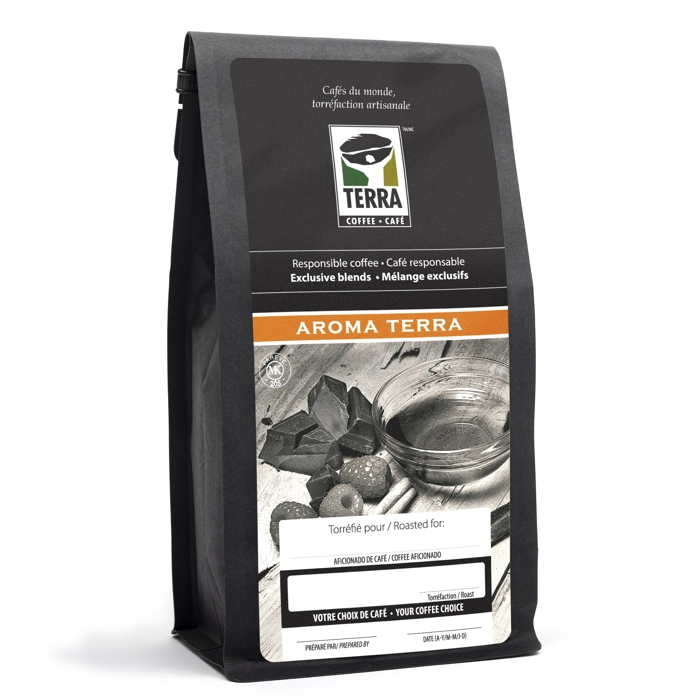 Un café décaf onctueusement velouté agrémenté d'une riche saveur de vanille francaise et de noisette. Fraichement aromatisé sur demande.