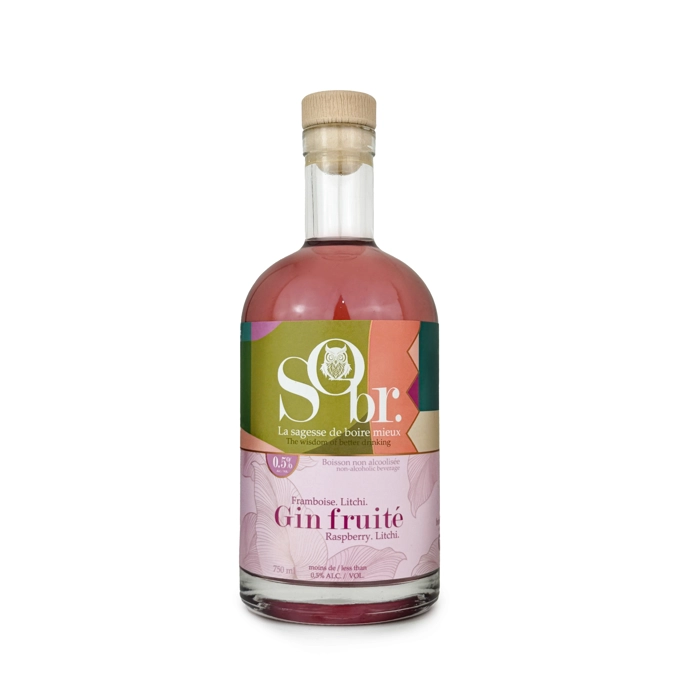 Gin fruité litchi framboise Sobr. sans alcool