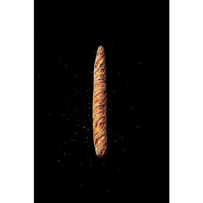 Petite baguette fine et croustillante aux graines de sésame qui convient parfaitement à l’apéro, avec les soupes et même avec la fondue au fromage.