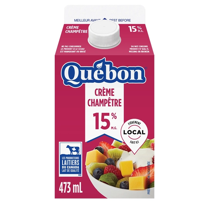 Plus légère, la crème champêtre 15 % remplace avantageusement la crème champêtre 35 % pour napper les fruits et les desserts.