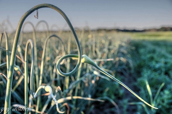 What’s amazing about garlic scapes is that they are essential to garlic bulb production. In simple terms, the scape is the first stage of the bulb’s growth. To allow the bulb to develop properly, farmers must cut the scape’s stem towards the end of June, when it curls around itself about two full turns.