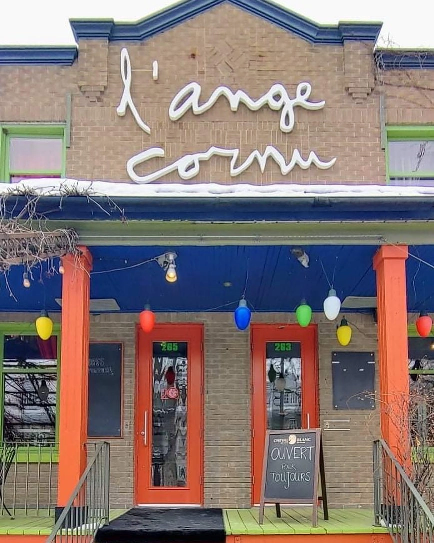 Bistro l'Ange cornu is set in a historic building in the heart of L'Assomption, in Lanaudière. The establishment offers seasonal cuisine lovingly prepared and recommended by an experienced team, complemented by a selection of private import wines and local microbrewery beers. In summer, terraces and the backyard host intimate shows by emerging and renowned artists, steps from the Théâtre Hector-Charland. A place where culinary culture and artistic culture meet in an atmosphere of greenery and colourful rhythms.