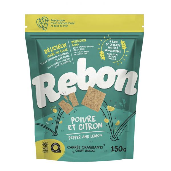 Une collation délicieuse, saine et écoresponsable, ça existe? Oui, oui et oui! Les carrés craquants Rebon sont faits de drèche de bière, c’est-à-dire des céréales issues du brassage de la bière, principalement de l’orge maltée. Après avoir longtemps trempé dans une cuve afin d’en faire le moût qui deviendra la bière, les céréales sont récupérées par Rebon pour être transformées en craquelins. Les carrés sont proposés en sept saveurs, convenant ainsi parfaitement aux différentes occasions et se marient avec tout plein d’ingrédients : fromage ou «fauxmage», trempette, houmous, végé-pâté… Une collation nutritive qui mise sur l’économie circulaire, c’est gagnant!