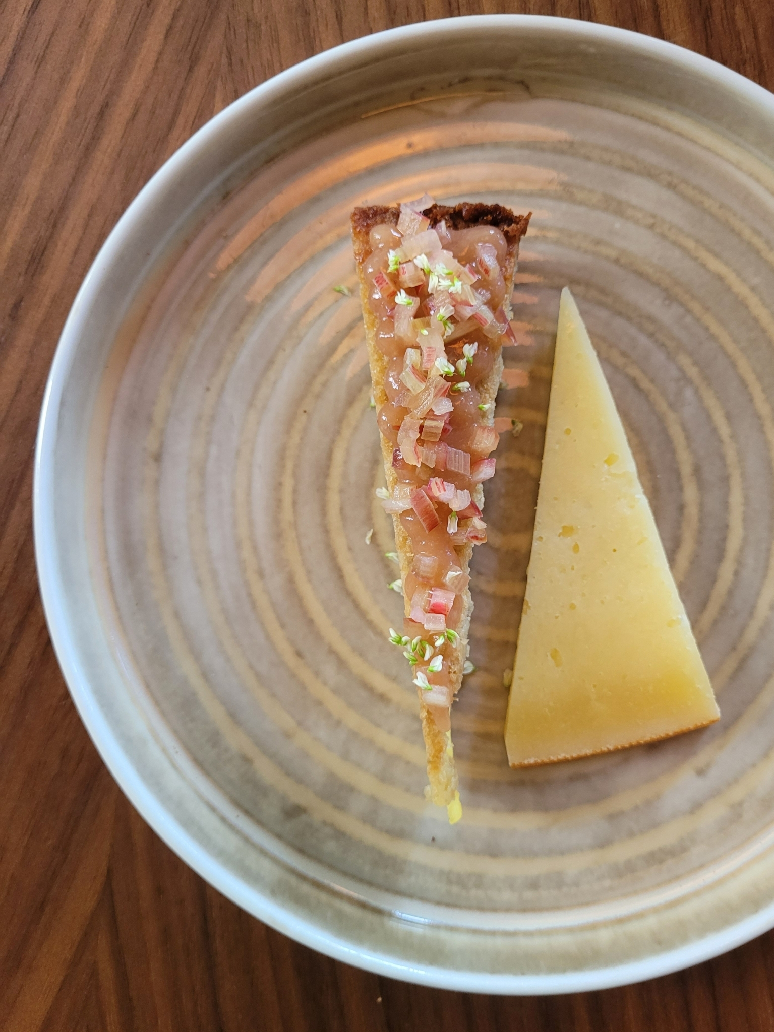J’ai particulièrement été impressionné par le tartare de cannette (le meilleur tartare mangé de l’année) qui est librement inspiré du Kifto, un plat traditionnel éthiopien. Le spectaculaire résultat est obtenu en émulsifiant la fine chaire de cannette au gras de canard, auquel il rehausse avec une sauce à base de feuille de cassis. Un petit coussin farci de fromage maison, ainsi qu’une roulade de chou braisé complète ce plat, tellement satisfaisant et amusant à manger. Il importe de s’arrêter aux Mal-Aimés pour y vivre un dépaysement tout à fait savoureux.