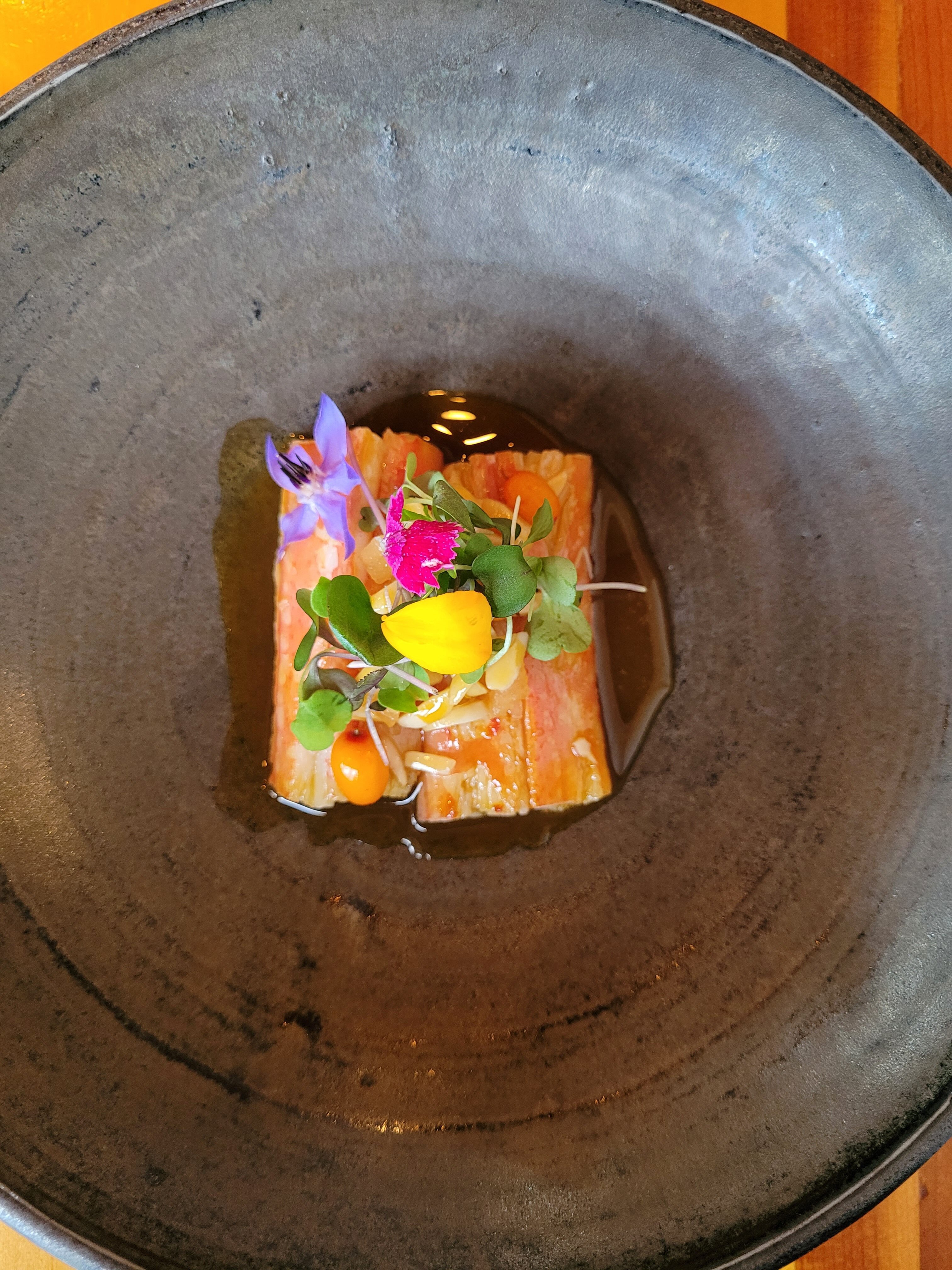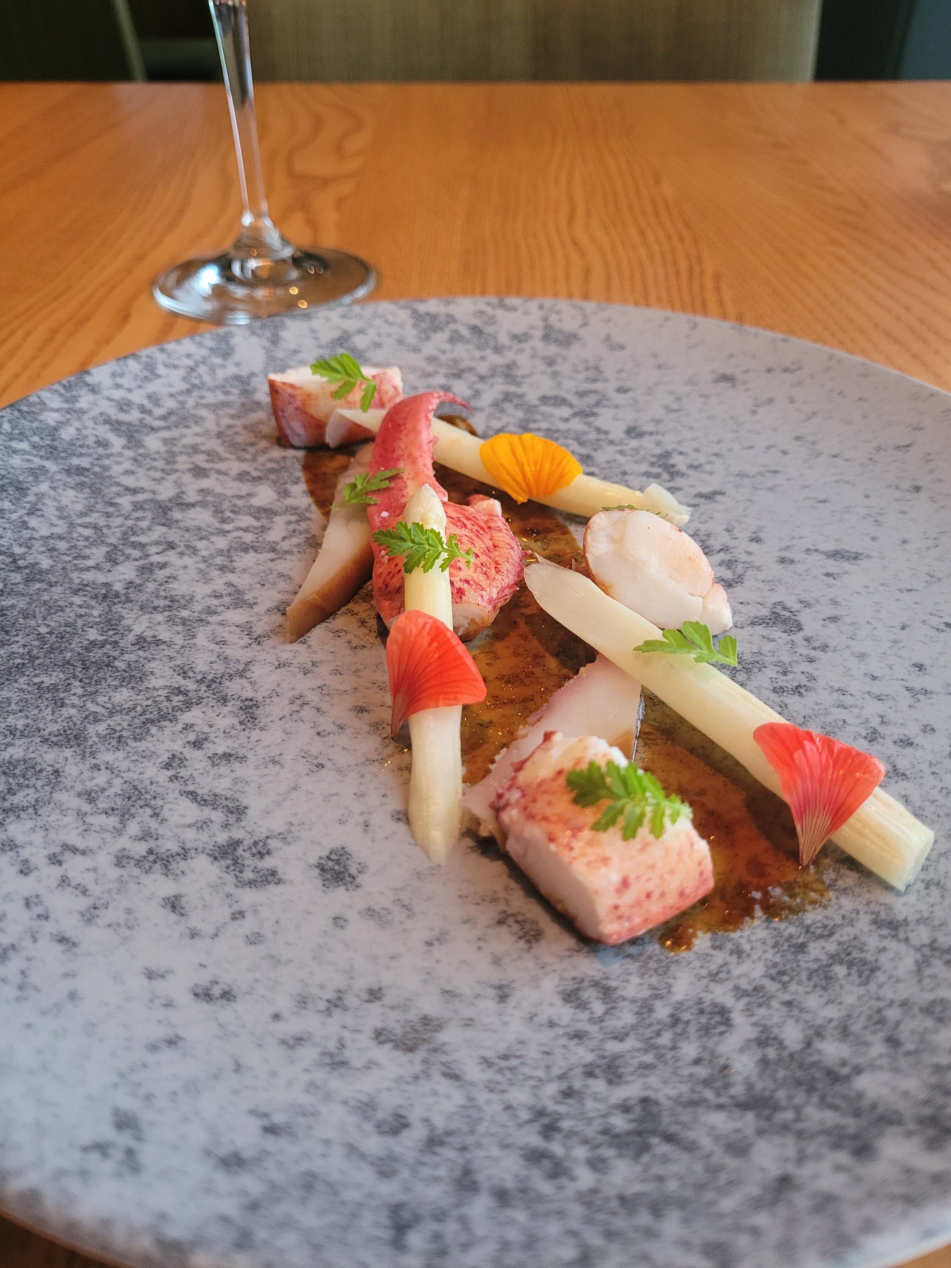 Je rêve encore de la chair de crabe parfaitement décortiqué, baignant docilement dans un garum de crevettes (une fermentation à base de ce crustacé), puis rehaussé par quelques baies d’argousier aussi pimpantes en couleur qu’en saveurs. Du « taco » de homard avec un beurre blanc à l’anis en guise de sauce, ou encore du plat signature de la maison, au menu depuis plus de 10 ans : deux imposants pétoncles parfaitement saisis à l’unilatéral, déposés sur une délicate purée de betterave aux graines de fenouil rôties, puis rehaussés, pour un peu plus de gourmandise, d’un crumble de beurre noisette et de poudre de thé des bois. Un menu « terre », un second menu « mer », ainsi qu’un troisième végétarien sont les trois options s’offrant à vous pour vivre l’intégralité de l’expérience.