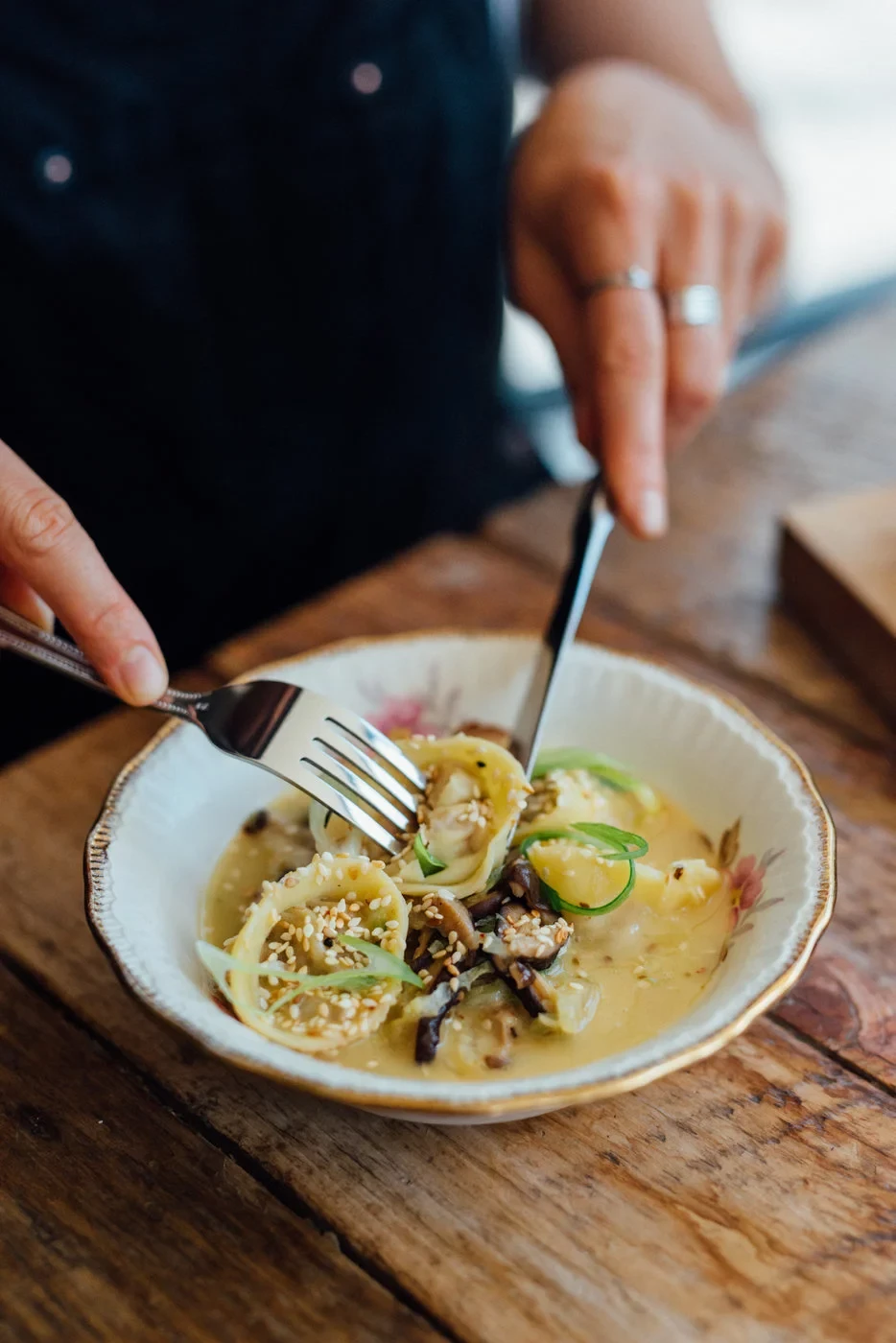 Il est particulièrement important pour l’équipe d’Hélicoptère d’utiliser le plus possible l’entièreté des animaux pour les plats. Par exemple, le porc est livré entier par la ferme familiale Porc Meilleur, et travaillé ensuite sur place. Il en est de même avec le canard cuisiné derrière leurs fourneaux. Six mois par an, le chef reçoit des canards entiers de son fournisseur Canard du Village, une ferme familiale dont les produits sont certifiés par Aliments du Québec. Cette ferme de Saint-Pie élève depuis plus de 20 ans des canards de Barbarie sans antibiotiques, sans gavage et nourris au lin pour un apport en Omega 3. Jocelyne, de la quatrième génération de propriétaires, est sur le point de passer le flambeau à ses enfants, qui continueront l’exploitation avec la même philosophie. Entre décembre et août, vous trouverez donc les cuisses confites au menu du café et les poitrines braisées puis transformées en savoureux dumplings au menu du restaurant. L’Hélico propose une cuisine qui se veut créative et cosmopolite, tout en restant dans le respect des produits.