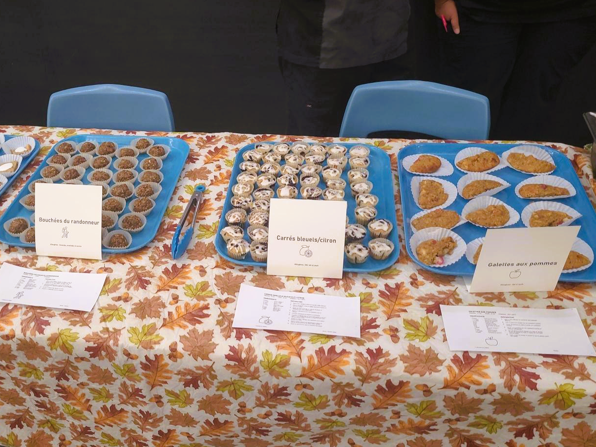 Les étudiants de troisième année en Techniques de diététique au Cégep de Trois-Rivières ont organisé une dégustation mettant en vedette les délices culinaires du Québec. Cuisinées avec amour, les bouchées incluaient des créations telles que du hummus à la betterave, des muffins aux pommes et canneberges, des Pop-Tarts aux fraises, un blondie (brownie au chocolat blanc) aux haricots, des carrés aux bleuets, des bouchées du randonneur, des galettes aux pommes et des scones aux canneberges.