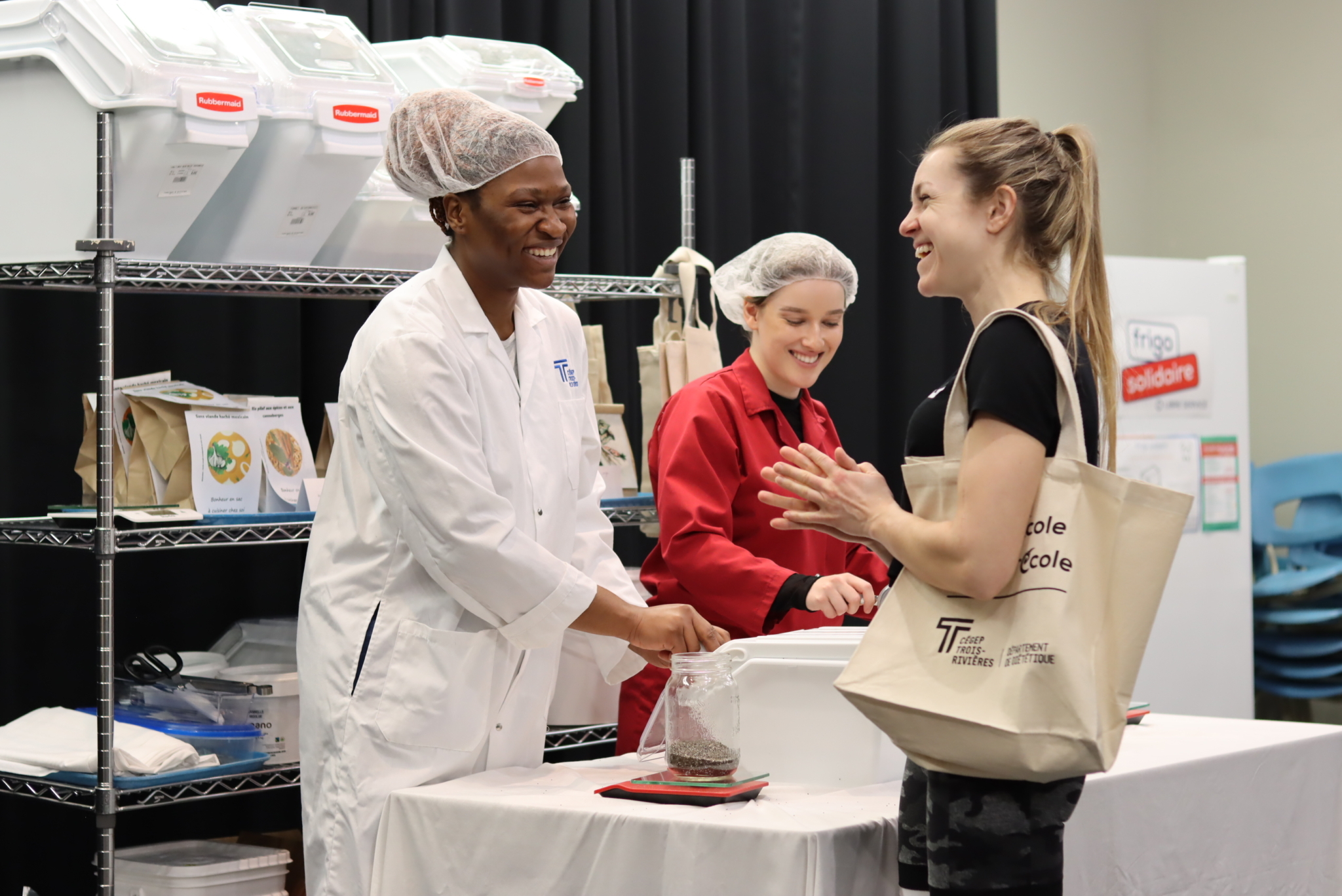 En complément, comme à tous les jeudis de l’année, le regroupement d’achat du département de Diététique faisait la vente d’aliments en vrac dont plusieurs proviennent du Québec. Les membres de la communauté collégiale avaient la possibilité de se procurer des canneberges séchées, des pommes séchées, des farines et des flocons d’avoine, en plus des très populaires recettes en sac à cuisiner à la maison