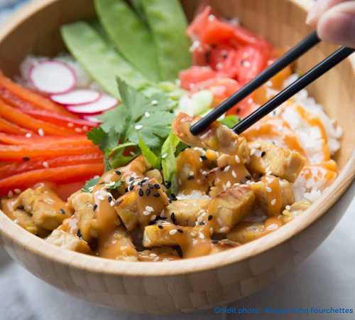 Les possibilités sont infinies. Que ce soit dans les salades, omelettes, sandwichs, poké ou buddha bols, tapas, etc. En gros, il s'adapte à votre recette! Prenez n’importe quelle, ou presque, préparation contenant une protéine animale cuite et remplacez-la par du tempeh. Cette alternative n’est pas réservée qu’aux végétariens et vegans de ce monde, détrompez-vous ! Même les carnivores endurcis trouveront leur compte avec les cubes marinés Tempehine. C’est presque comme manger des pépites de poulet assaisonnées, sauf qu’il n’y a pas de panure ni de poulet, c’est plutôt du soya fermenté épicé. Finalement, ça n’a rien avoir, mais c’est tout aussi délicieux !