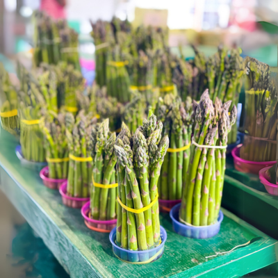Au printemps, quand la neige disparaît enfin et que la terre reprend vie, quelques héros de nos champs pointent le bout de leur nez pour nous annoncer les beaux jours. Parmi eux : la tête de violon, la rhubarbe... et bien sûr, l'asperge ! Ce légume "primavera" est l'un des tout premiers à garnir nos marchés, marquant officiellement le coup d’envoi d’une saison foisonnante pour nos cultures maraîchères locales.