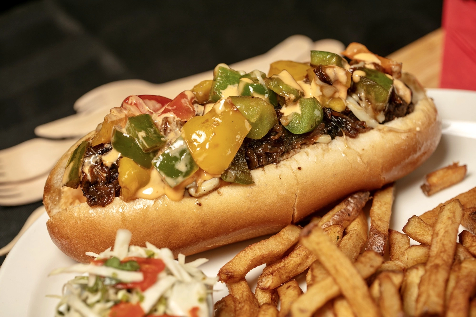Restaurant familial de quartier, À l'Arrêt cuisine tout sur place avec des produits québécois, sans agents de conservation ni aliments surgelés. Une approche écoresponsable jusque dans le choix des assiettes compostables et des ustensiles en bois.