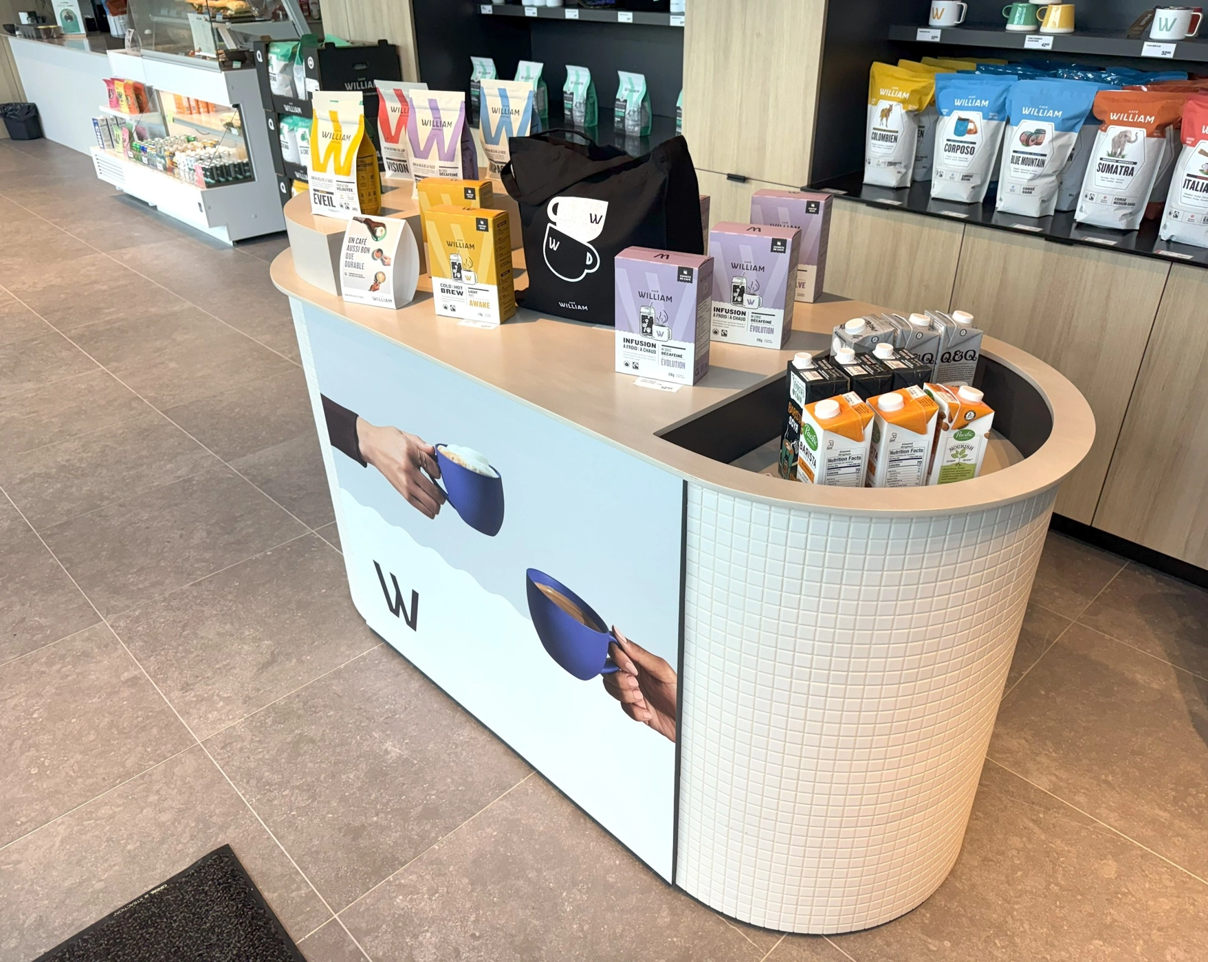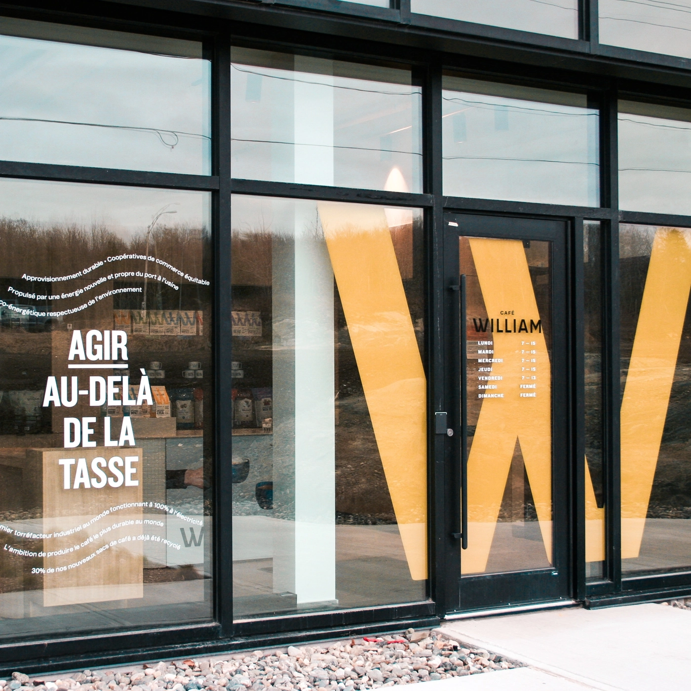 Le café boutique de Café William, inauguré à l'été 2024 à Sherbrooke, est installé au sein de la nouvelle usine écoénergétique de l'entreprise. Cet espace de dégustation, directement sur le site de production, offre aux visiteurs la possibilité de savourer des breuvages d'une fraîcheur optimale dans un cadre écoresponsable. En tant qu'entreprise certifiée B-Corp, Café William intègre des ingrédients régionaux dans ses breuvages et mets pour soutenir l'économie locale, réduire son empreinte carbone et renforcer les liens avec sa communauté.