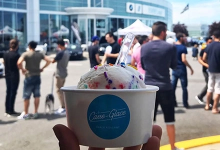 Le Casse-Glace est un food truck spécialisé dans les sandwichs à la crème glacée. Le concept repose sur la création personnalisée : les clients composent leur propre sandwich à partir de crèmes glacées et de biscuits faits maison. L'offre comprend aussi des crèmes glacées et d'autres gourmandises. Les produits locaux sont utilisés dans des combinaisons de saveurs saisonnières.