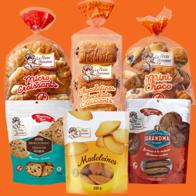 La Petite Bretonne a jadis eu un très grand éventail de produits. On pouvait en compter plus d'une cinquantaine. Cela voulait dire plusieurs recettes, beaucoup d'ingrédients différents, inventaires complexes, beaucoup d’emballages différents, et en grande quantité... Aujourd'hui, nous ne fabriquons que quelques produits, les grands favoris des Québécois : des croissants, des chocolatines, des madeleines et des biscuits. Nos capacités de production quotidiennes sont de 1 200 000 Micros Croissants, 1 100 000 Mini Choco, 800 000 chocolatines et 900 000 unités de madeleines.