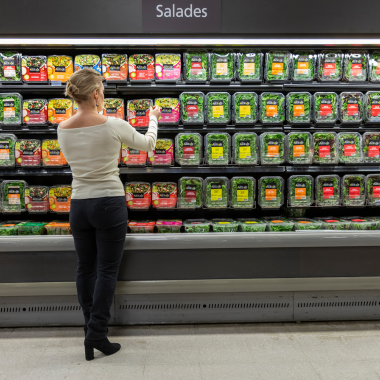 Enfin, nous avons renouvelé le design de nos kits de salade prêts à manger, dans le même esprit de dynamisme. Ils ont désormais un visuel impactant et distinctif qui montre la recette en contexte d’usage, ce qui les rend plus appétissants.