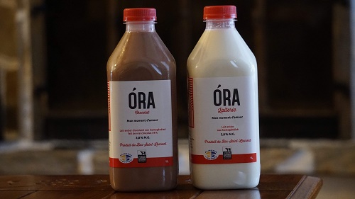 « Le lait entier de la Laiterie Óra est le lait le moins transformé qu’on peut retrouver sur le marché. » explique Jean-Mathieu D’Amour. Désireux de revenir aux pratiques du bon vieux temps, le lait Óra est vendu comme il est fait, c’est-à-dire qu’il est seulement pasteurisé. C’est un lait riche au taux élevé de matières grasses (3.8%) qui s’explique par sa forte teneur en Oméga-3 ce qui fait de ce lait un produit très nourrissant.