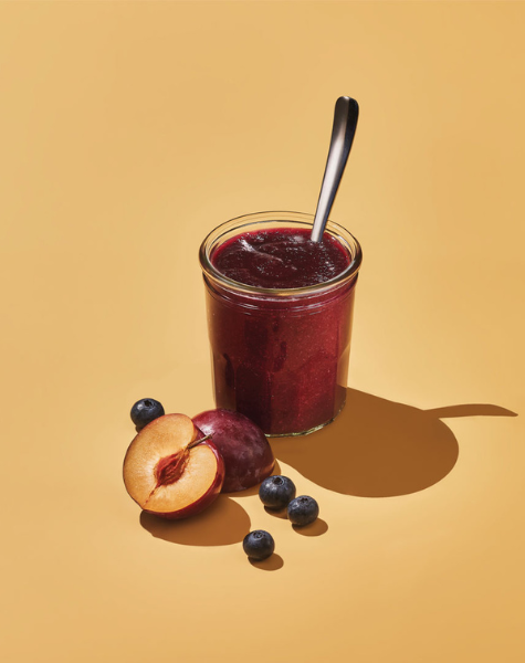 Compote de pommes, de prunes et de bleuets parfumée à l’érable
