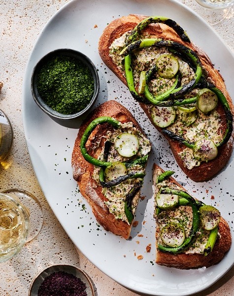 Tartines de cornichons et fleurs d’ail grillées