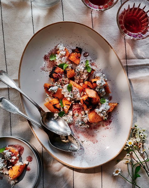 Courge rôtie au fromage de chèvre cendré