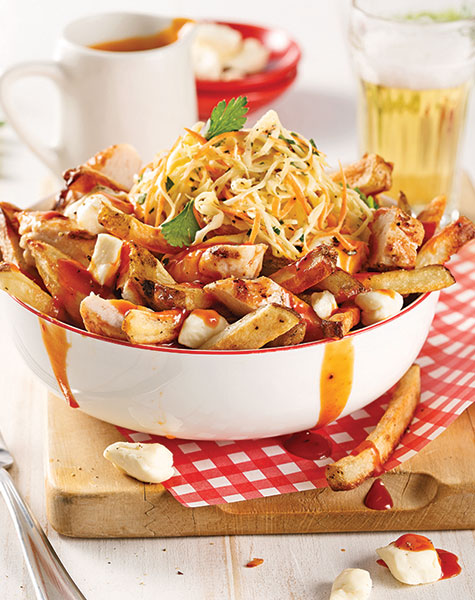 Poutine au poulet et salade de chou, sauce barbecue