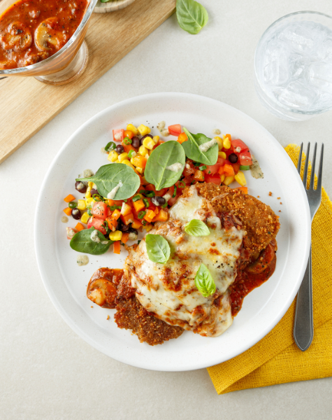 Escalopes de veau panées à la sauce rosée et sa salade colorée