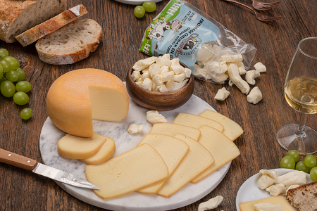 La Fromagerie Champêtre se spécialise dans la fabrication de fromages fins et de cheddar en blocs et en grains. Au fil des ans, plusieurs de ces savoureux fromages se sont distingués par des reconnaissances nationales. Parmi ceux-ci, on trouvera notamment Le Presqu’île, petit joyau de La Fromagerie Champêtre. Entièrement fabriqué avec le lait des régions environnantes, il doit son nom à la Presqu’île de Repentigny, berceau de l’entreprise. Sa texture est décadente, onctueuse et fondante en bouche. Un must pour votre prochaine soirée vin et fromages en amoureux!